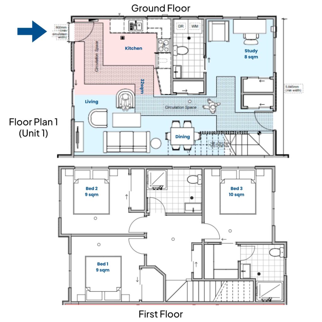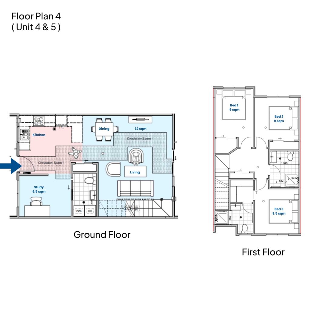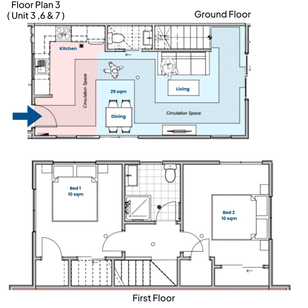 Welcome to a stylish collection of seven thoughtfully designed homes that blend comfort, functionality, and modern appeal. The three 3-bedroom homes feature 2.5 bathrooms, a study, and secure parking – perfect for growing families. The four 2-bedroom homes offer 1.5 bathrooms and are ideal for professionals or small families seeking low-maintenance living.